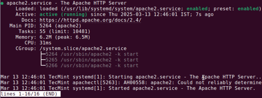 Thay thế apache2 bằng tên dịch vụ thực tế mà bạn muốn quản lý.